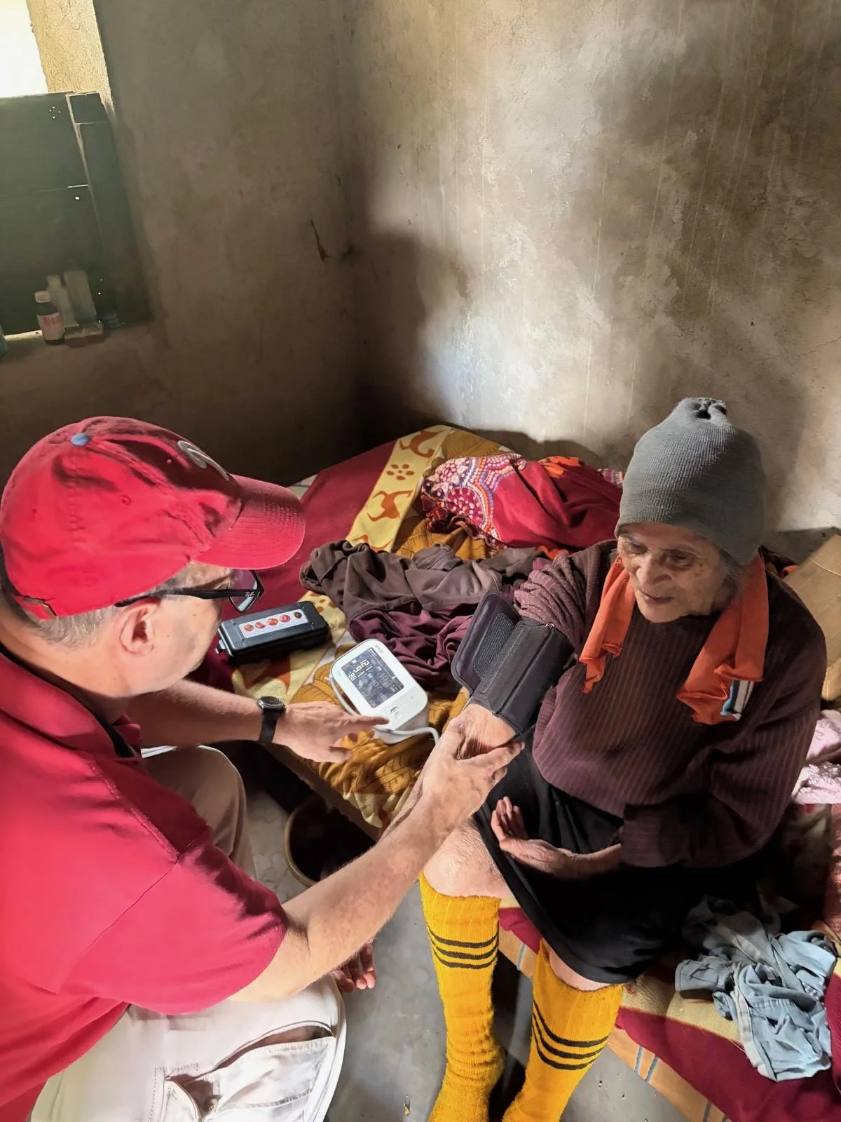 Inside, we found an elderly woman—95 years old—who looked older than the mountains themselves. She was not in a coma, but she was very confused, answering every question with ‘No sé’—I don’t know. She also had untreated hypertension and significant back pain.